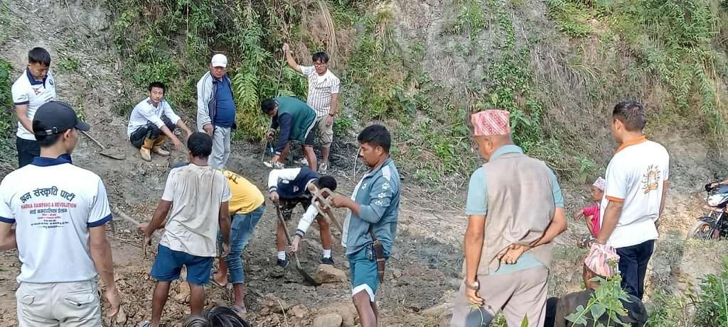 इलाम । श्रम संस्कृति पार्टीको पहलमा माई नगरपालिका–९ र १० जोड्ने मुख्य सडक खण्डमा शनिवार व्यापक श्रमदान अभियान सम्पन्न गरिएको छ। पार्टीका नगर अध्यक्ष बिनोद लिम्बुको नेतृत्वमा गरिएको श्रमदानमा स्थानीय बासिन्दा, पार्टी कार्यकर्ता तथा युवासमुदाय गरी २५ जनाभन्दा बढीको सहभागिता रहेको आयोजक पक्षले जनाएको छ।