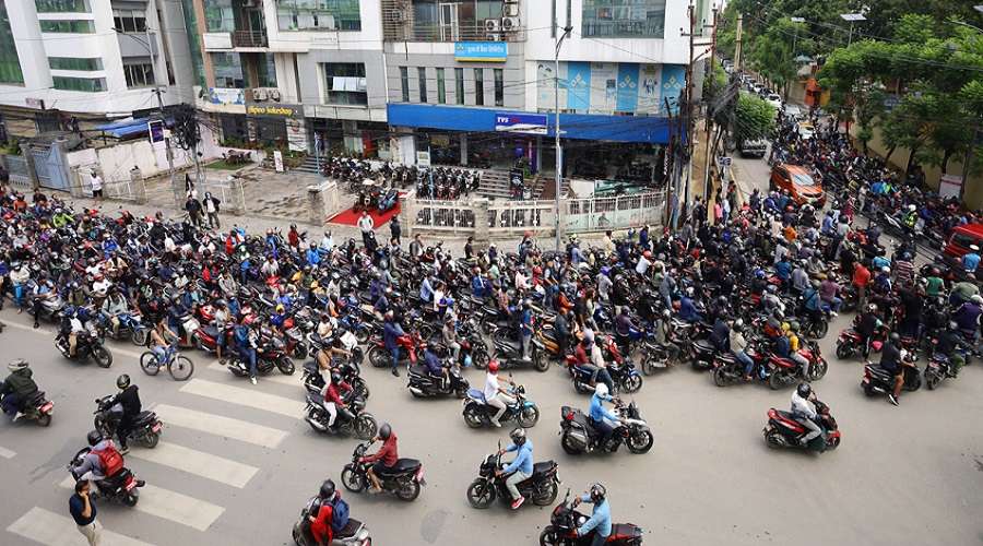 आन्दोलनका कारण निजी क्षेत्रका पेट्रोल पम्पले पेट्रोलियम बिक्री वितरण रोकेर पेट्रोल पम्प बन्द गरेपछि सरकारी पम्पमा पेट्रोल भर्नेको भीड देखिएको छ ।